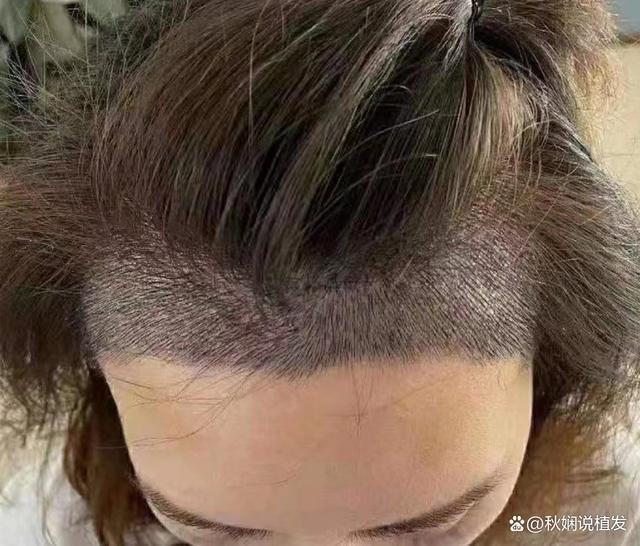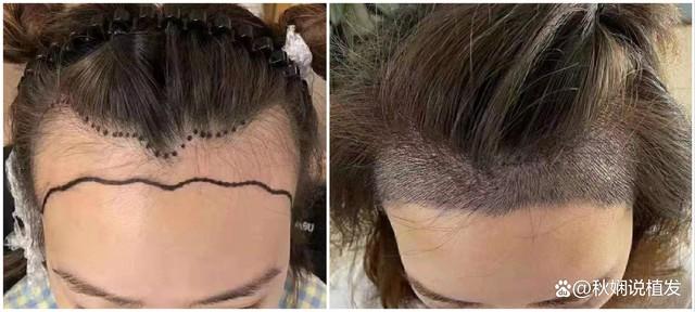 她的发际线上移,不是很严重。头发质量很好、发量也很多,种完发际线会跟预期效果一样。用她自己的话说,就是拿起镜子照,总觉得发际线高,大长脸,琢磨这把发际线下调几公分,三庭比例就正常了,于是来到北京一家植发医院,找到经验丰富的郝主任亲自主刀操作。