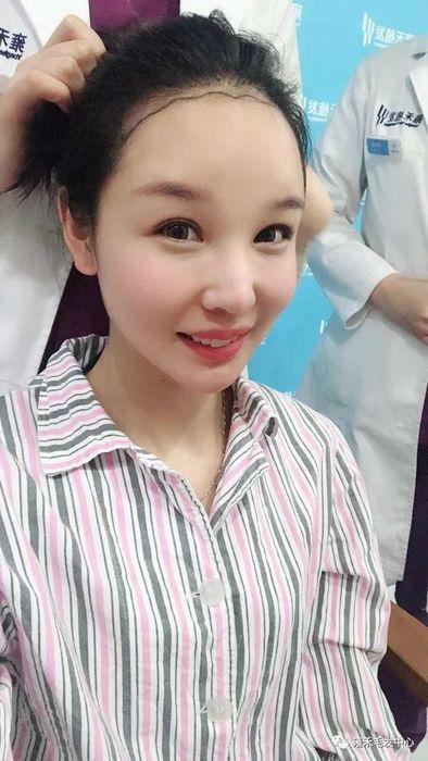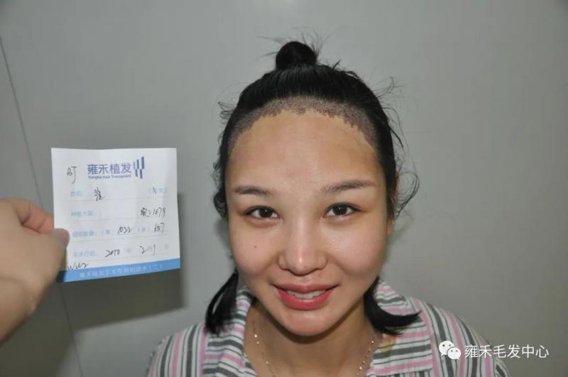 (术后当天,种植区有血痂,正常情况。她的发际设计的是波纹形,种植出来也就是波纹形的。)