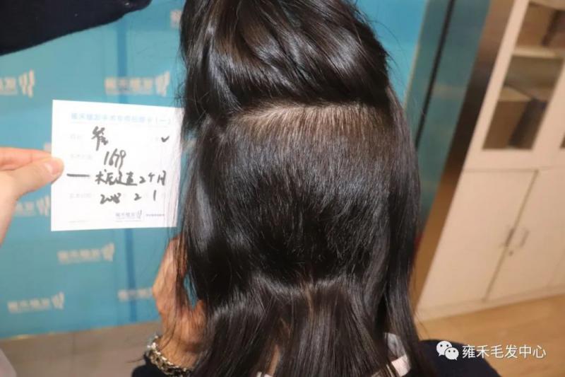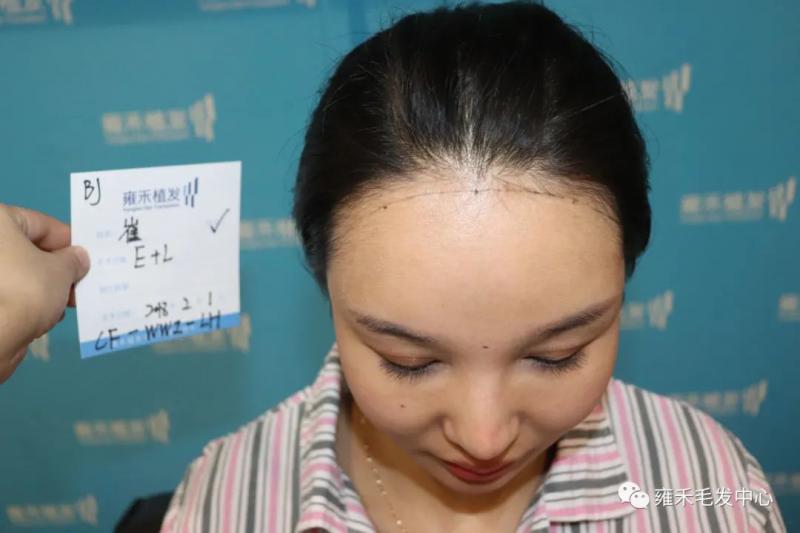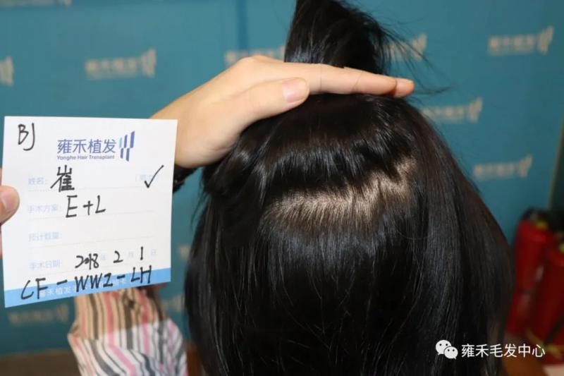 因为是女性植发,前面干脆不理发,再把头发往前一梳可以遮盖种植区,后面理了一点取发区,但后枕上部留了长头发,披散开来能遮挡取发区。隔天,崔医生继续上班接待发友,别人愣是没看出来她手术的痕迹,就像没植发一样,这就是雍禾的艺术植发。