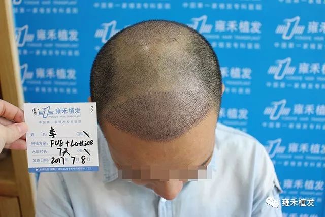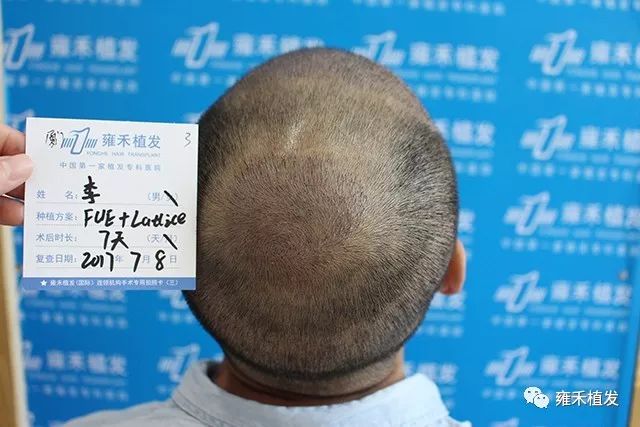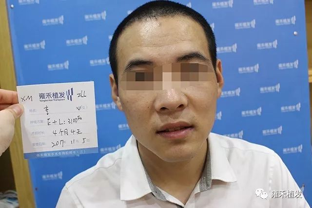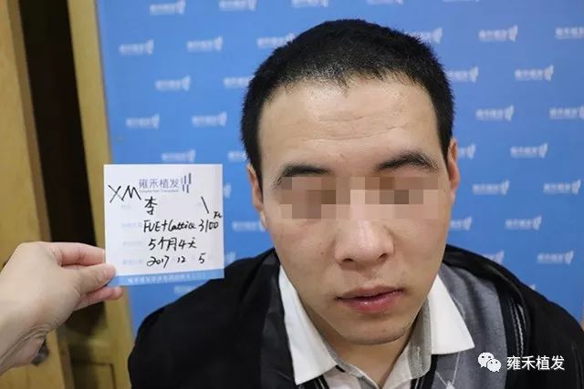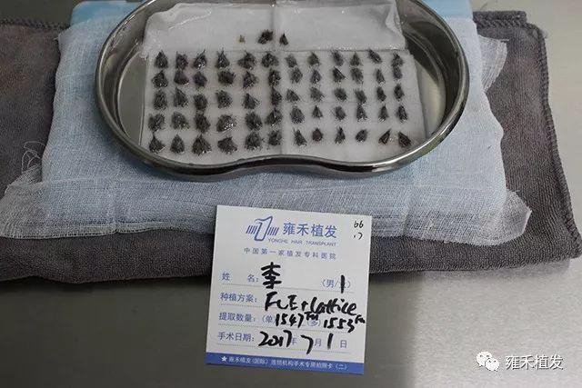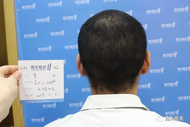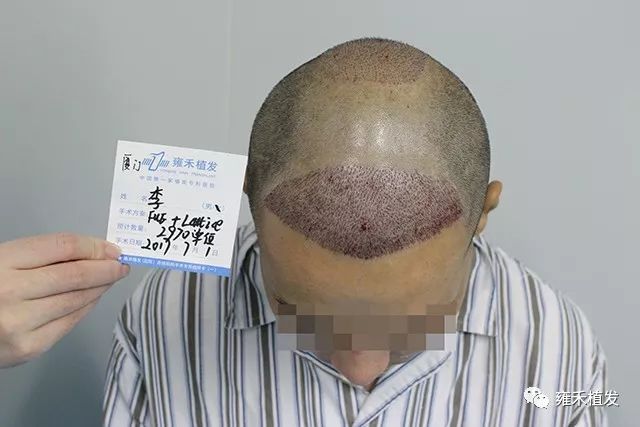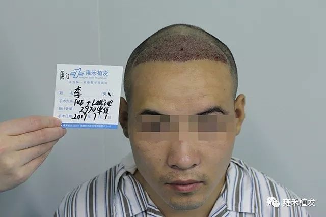 2017年7月1日,厦门雍禾为李先生植发3100单位,含单根头发的毛囊单位1547,含多根头发的毛囊单位1553,采用FUE和LATTICE两种技术,大概是2比1的种植比例;本来术前预估种植2970,结果多取种130单位。这还是一例贷款植发,可以先付首付,然后分期支付余款。有些人是不必攒钱就有钱植发,有些人是攒够钱了植发,还有些人太着急改变形象就先贷款植发。李先生改变头发形象是只争朝夕。