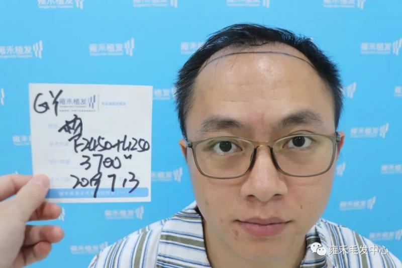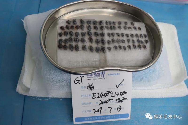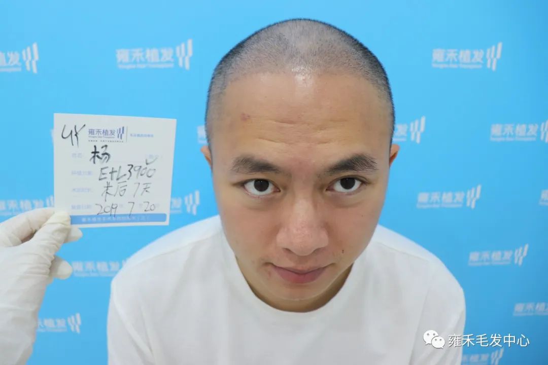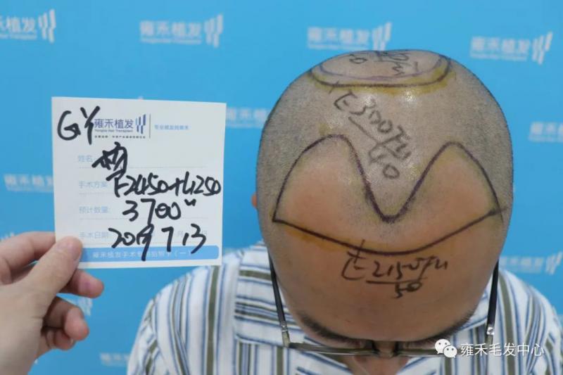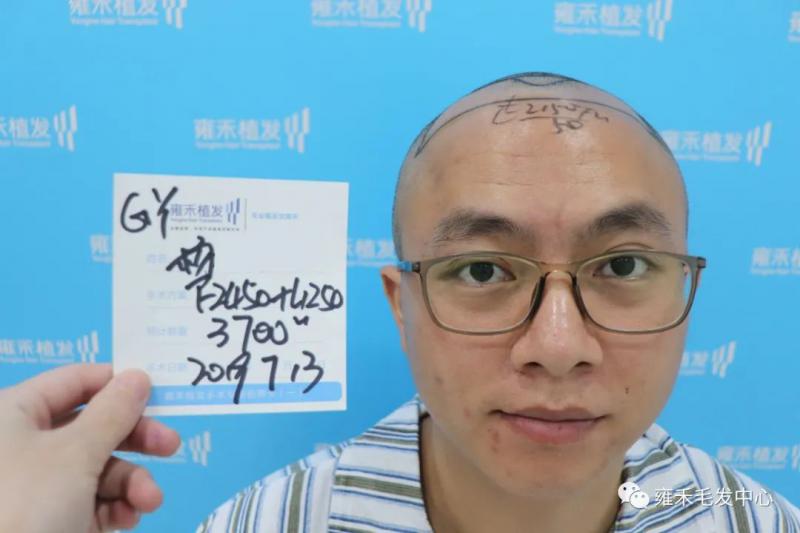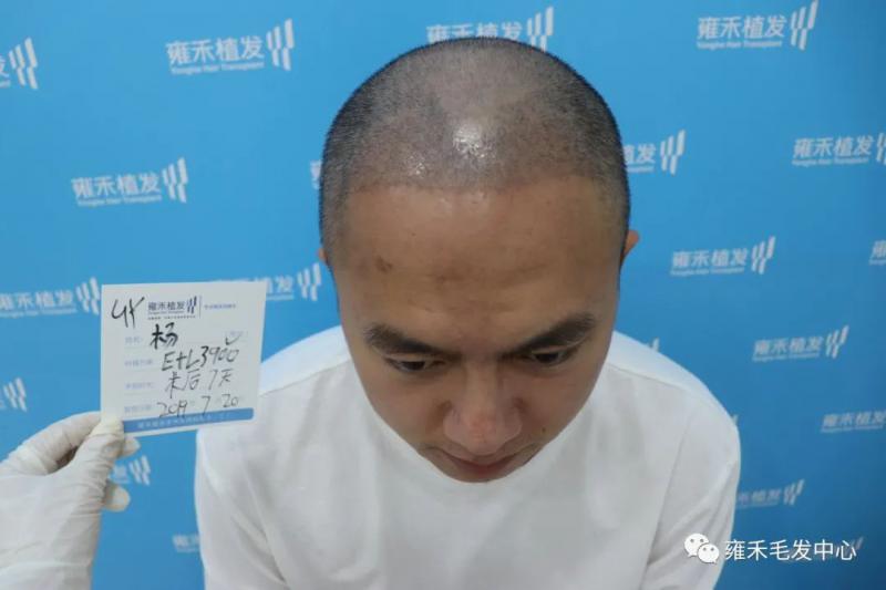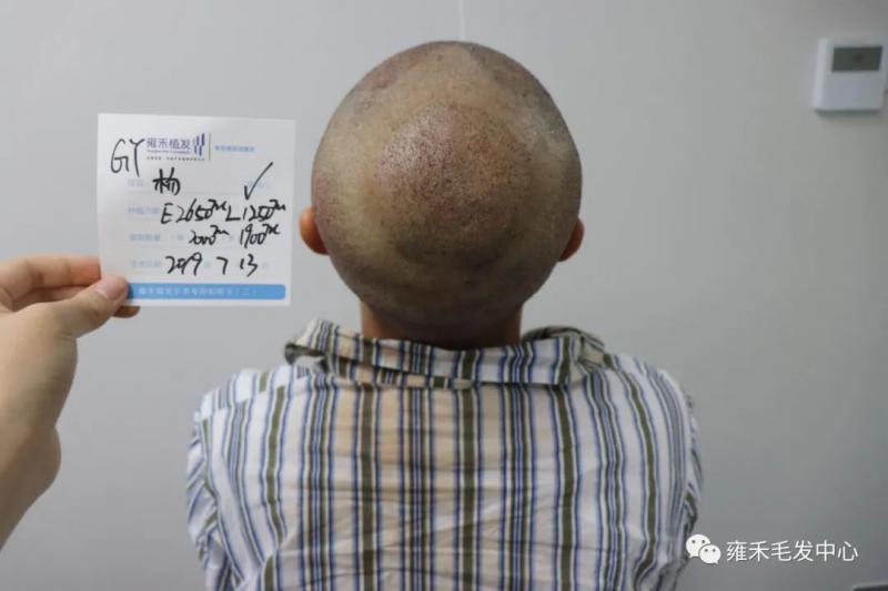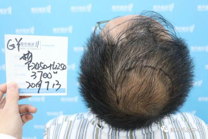 2019年7月13日,贵阳雍禾为杨先生种植3900单位,含单根头发的毛囊单位2000,含多根头发的毛囊单位1900,并且是两种技术种植,FUE种植2450单位,LATTICE种植1450单位。本来术前预估种植3700单位,结果多取种200单位。整个头顶都是稀疏和裸露,近4000单位的种植量算是大面积植发了!