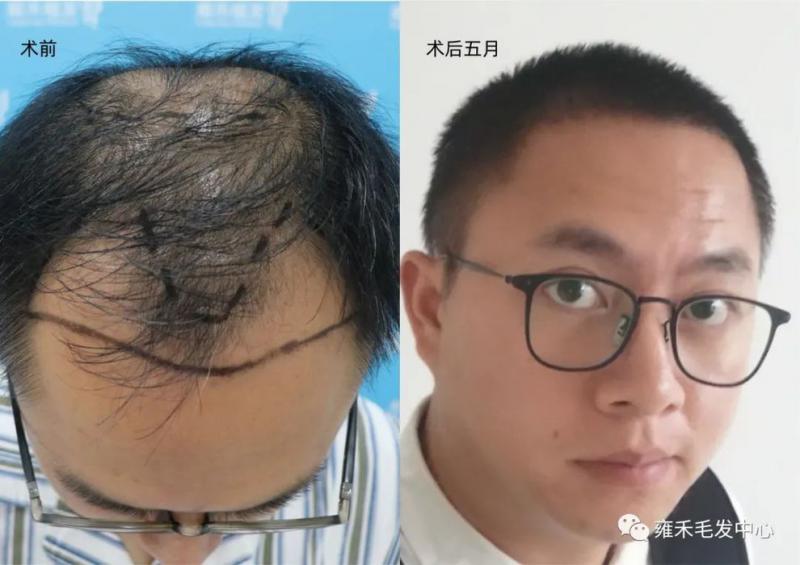 一般来说,术后半年初步效果,一年有最终效果。杨先生心想,自己的脱发面积大,效果就来得慢,的一年应该有明显效果,不料,术后5月就了好效果,头顶浓密了,即使留了短发也是不显脱发,嗯,以前他是长发遮盖显得邋遢,现在短短发倒精神了。