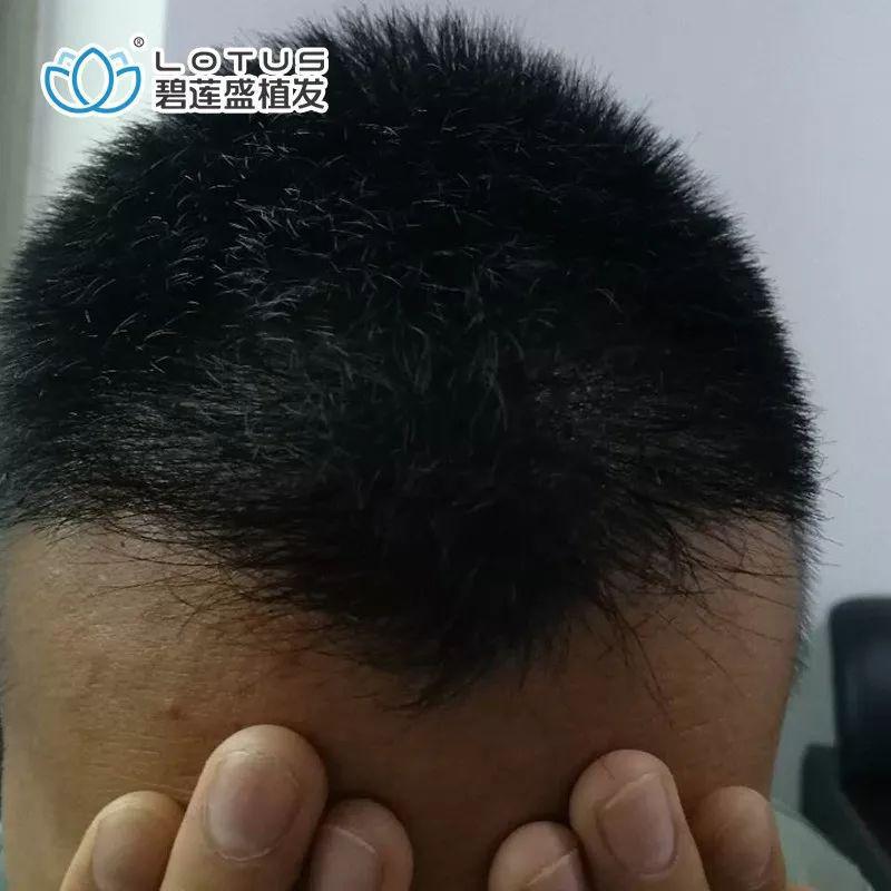 头发又长长了些,仔细看种植区还有许多新长出来的小细头发,对比术后2个月的照片,可明显看到变化,额角已经渐黑起来。