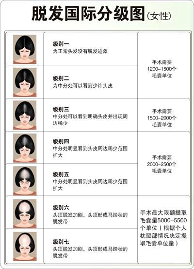 女性型脱发传统上使用Ludwig量表进行分类,将遗传性脱发的阶段分为三种类型。推荐阅读《女性脱发治疗》