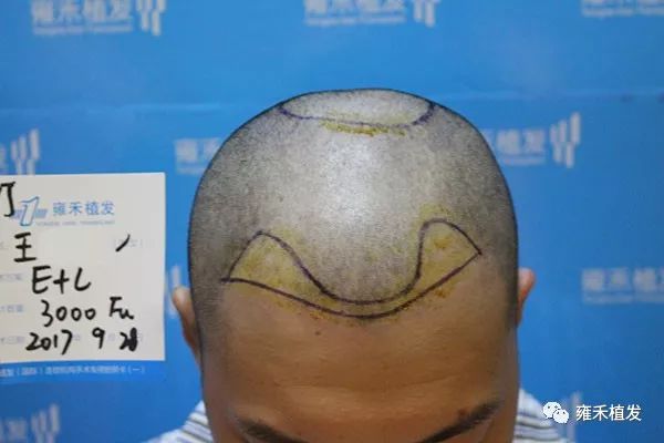 小王和妈妈考察了许多植发医院,最后将手术定在南京雍禾,主要是雍禾的品牌影响力大,技术好,诚信好,值得托付。2017年9月28日,南京雍禾为小王种植3230单位,含单根头发的毛囊单位1370,含多根头发的毛囊单位1860,FUE种植发际线后退区,LATTICE种植头旋稀疏区;本来术前预估种植3000单位,结果多取种230单位。