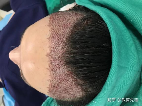 在大麦吃了个午饭,下午开始植发,同样是先打麻药,之后就开始植发了。至于疼不疼,还好,在可接受范围内。下面这张刚刚植完发,拜托医生帮忙照了下。种植完就回家休息了,之后麻药劲过了,也疼了半天左右,比想象中好很多。
