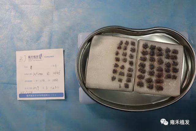葛先生的脱发是发际后退和稀疏区,根据当事人的意愿,北京雍禾采用LATTICE为他种植2646单位,含单根头发的毛囊单位1114,含多根头发的毛囊单位1532,本来术前预估种植2440,结果多取种206。因为延误两小时,他的手术也就比预期的晚结束两小时。