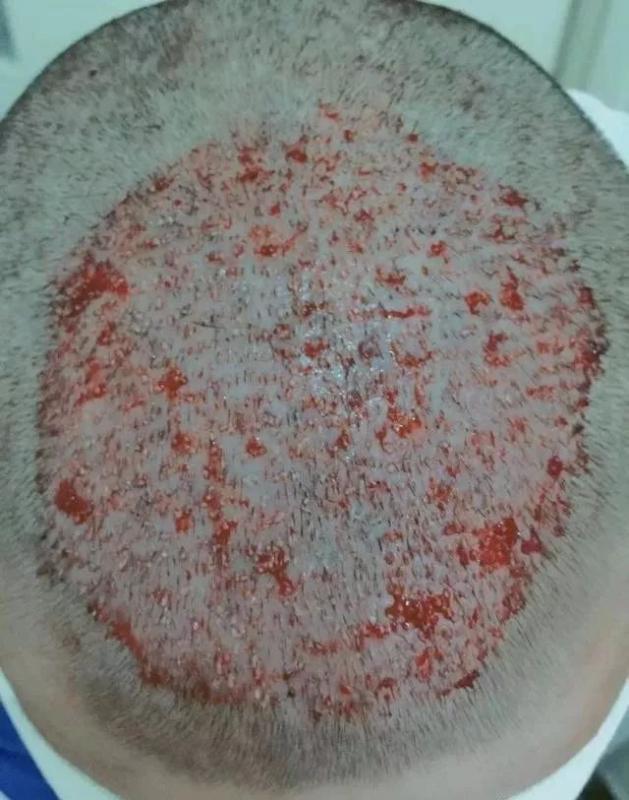 术后七天,血痂清理干净,已经看不出明显的种植痕迹了,并且后枕部也无明显提取痕迹,正在恢复当中。↑