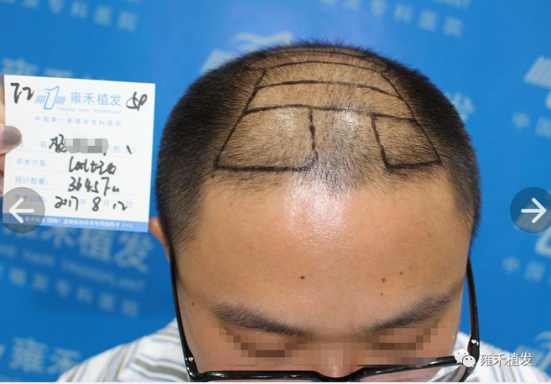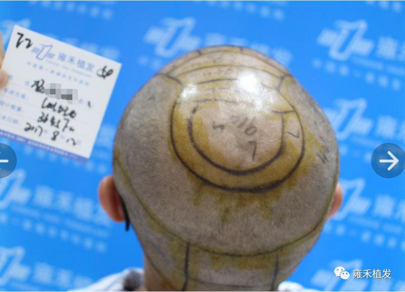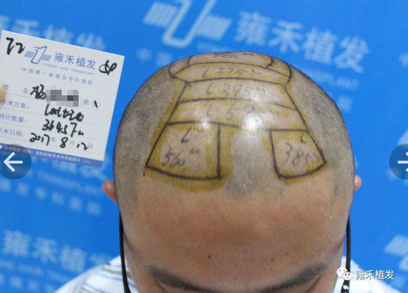 2017年8月12日,福州雍禾为小杨种植3645单位。注意,整个头顶的稀疏区全部采用LATTICE点阵加密技术,没用一个单位的FUE,L的费用远远贵于E,加上大面积,小杨算是把这几年攒的钱都押在植发上了,说明他是急切想恢复年轻形象,并且不计成本的。整个头顶不同区域是不同的稀疏,种植时对应地是不同密度,雍禾植发,精细化植发!