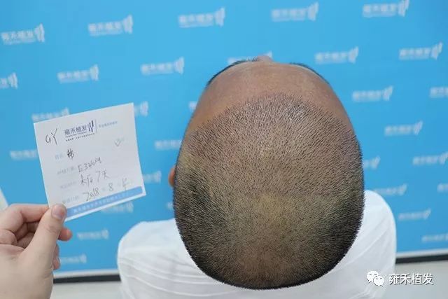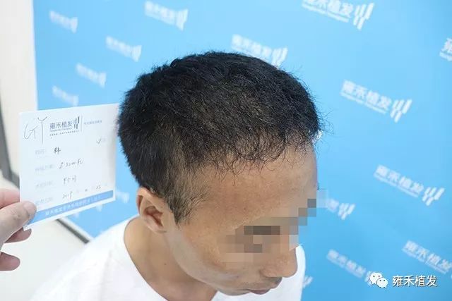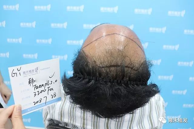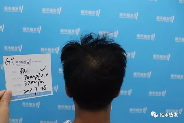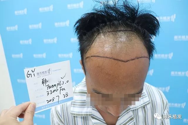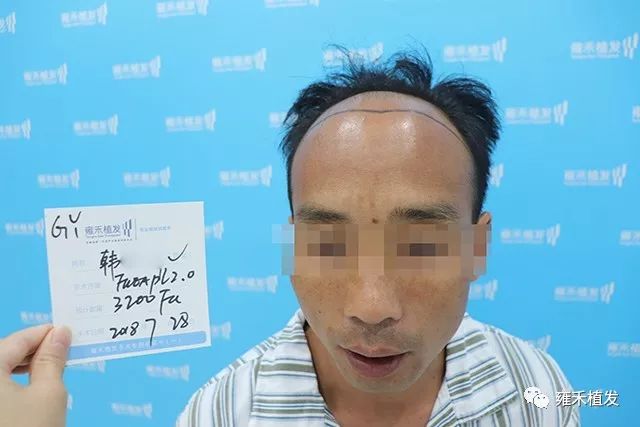 2018年7月28日,贵阳雍禾用FUE-APL2.0为韩先生种植3210单位,含单根头发的毛囊单位1600,含多根头发的毛囊单位1610,本来术前预估种植3200,结果多取种10单位。整个手术5小时,局麻状态下手术,无疼痛。植发是在大暑天,一年当中最热时。