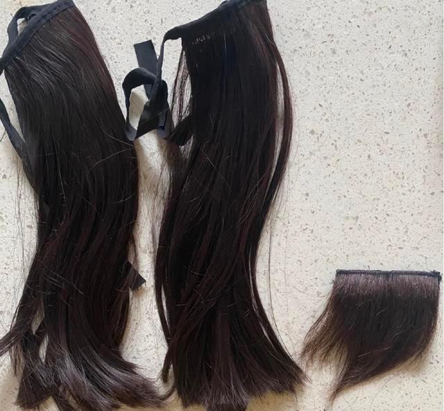 和假发片的使用有相似的点,都是需要用头发遮盖住的,所以在用的时候同样是夹在内层的头发,再把头发拨下来盖住。不过使用海绵发垫也是有缺点的,比较难遮盖住,远处的拍照还好,如果近距离自拍就容易露馅了。