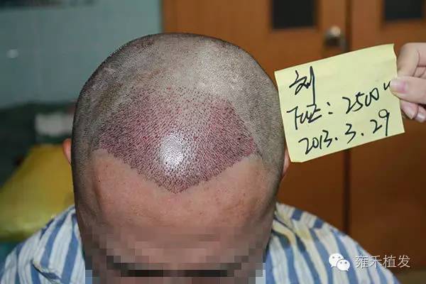 如果你没看本文标题,也没看后面的具体种植量,别人说种4000单位也不会感到意外的,因为像他这种情况在其它医院种植这么多单位是很正常的。但是,刘先生在上海雍禾仅仅种植了2500单位,也就是其它医院种植量的6成吧。延展一下。如果你是一个资深发友,在对比中会发现相同的脱发面积,雍禾植发的种植量总会比别人少出许多,是节约型的毛囊种植。这背后有两个原因,一是雍禾手术时不怎么伤及毛囊,二是种的新毛囊成活率高。