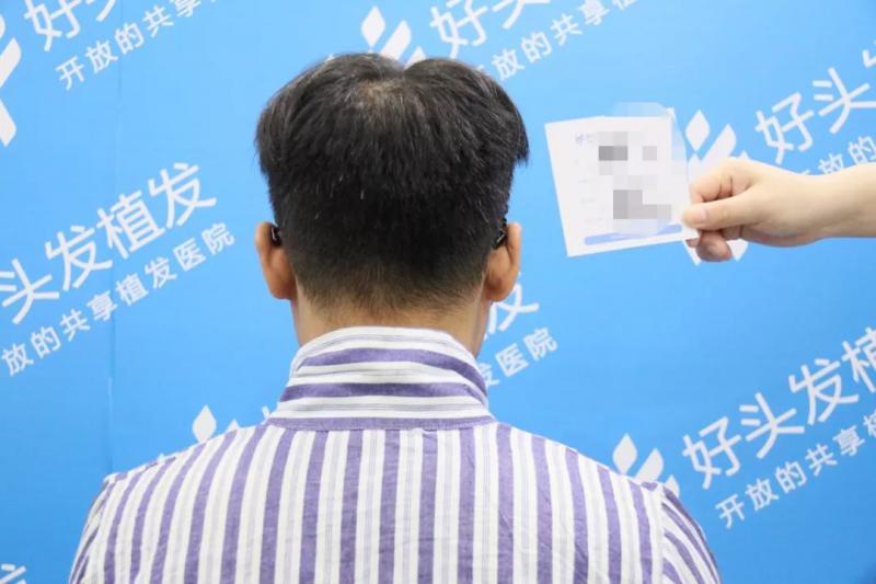 从图片中我们可以看到,张先生种植的头发已经完全覆盖了原来的脱发区域,头发的密度也非常不错,张先生还告诉我们,他的朋友们都没想到能在有生之年看到头发这么多的他。