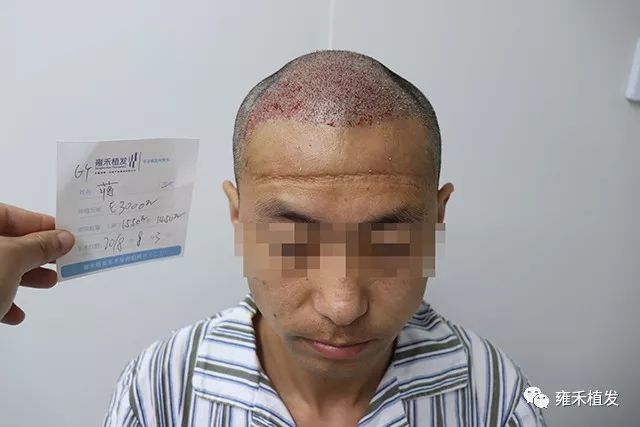 经过一番思想斗争,蒋老师觉得还是暑假植发最好,并且是早一天植发早一天受益。2018年8月3日,贵阳雍禾采用FUE-APL2.0为蒋老师植发3000单位,含单根头发的毛囊单位1550,含多根头发的毛囊单位1450,本来术前预估种植2990,结果多取种10单位。整个手术也就5小时多一点吧,无疼痛,手术室并有轻音乐,总体是舒适的。