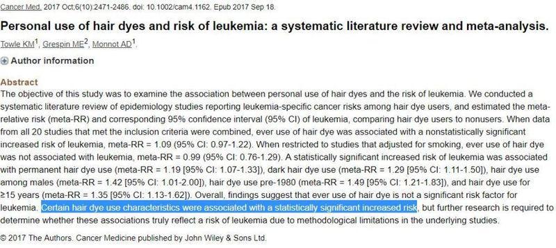 如果去仔细看看相关的证据,确实有研究显示染发剂和癌症之间有关。这方面主要是集中在白血病、淋巴瘤之类的跟血液有关的癌症以及膀胱癌。